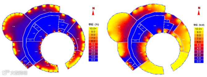 •天然采光模拟软件 PKPM-Daylight 支持全阴天稳态计算、全年 8760 小时逐时动态计算,支持多核并行运算,计算效率显著提高。自动统计采光系数、照度达标小时等关键指标,“多设计方案竞赛” 功能有助于快速方案比选、指导采光设计优化,让室内采光效果达到最佳。