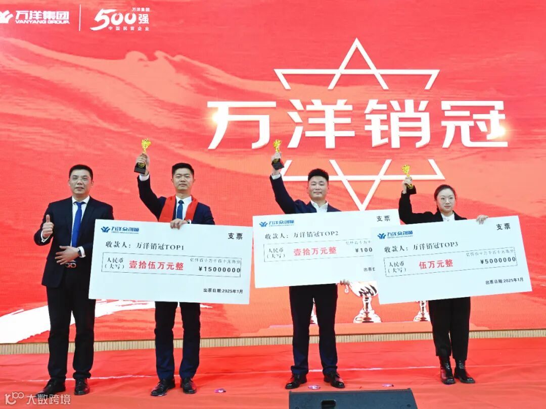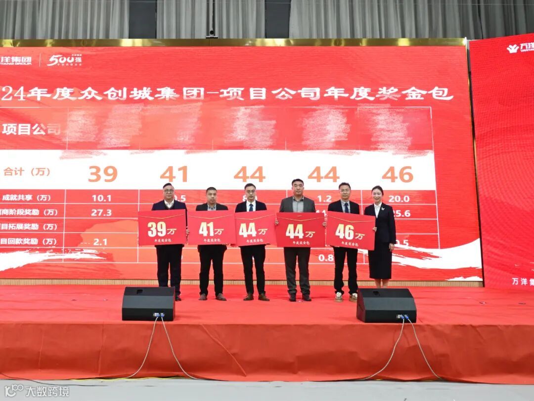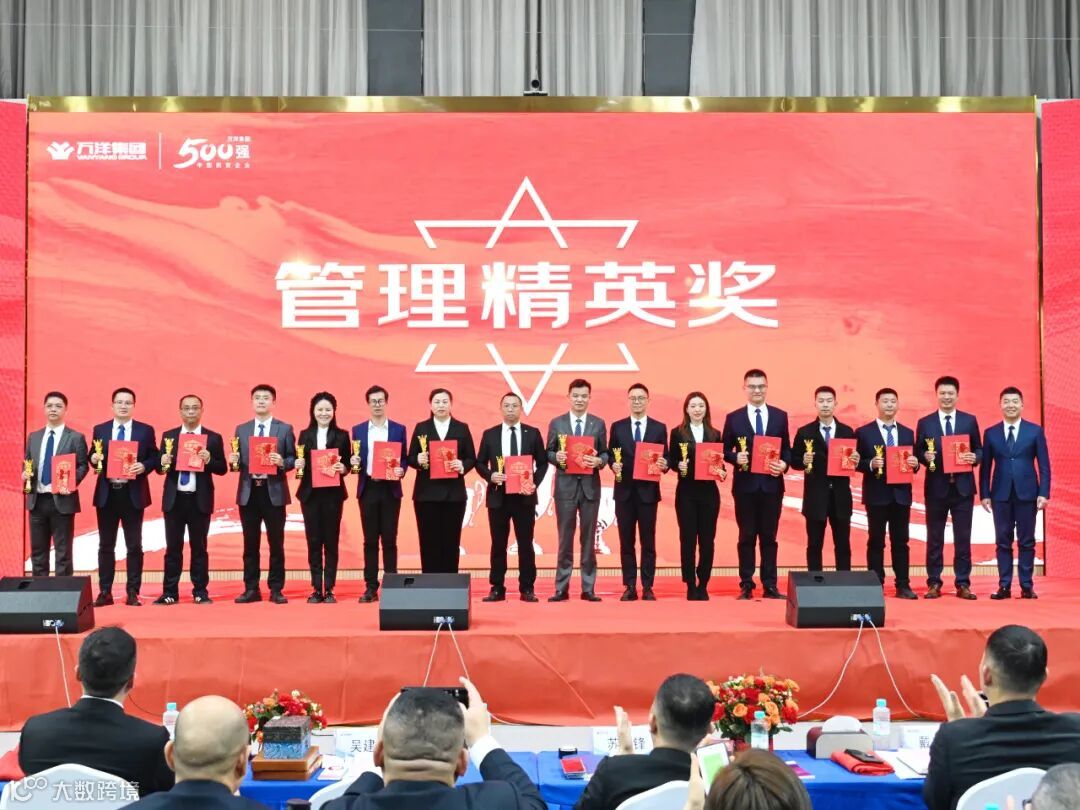 会议还为入职十周年、十五周年的员工颁发万洋同行章与万洋同心印,表彰他们与公司风雨同舟、十年如一日的坚守与奉献。同时表彰2024年度工作突出团队与个人,并颁发各子集团、区域公司、职能条线、业务公司年终奖金包。