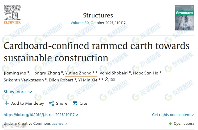 2025年9月,澳大利亚皇家墨尔本理工大学(RMITUniversity)的工程师团队发布了一项颠覆性成果——一种名为“纸板约束夯土”(cardboard-confinedrammedearth)的新型建筑材料。它仅由纸板、水和泥土构成,碳排放量仅为混凝土的四分之一,成本不足混凝土的三分之一,还能大幅减少垃圾填埋量。这项创新为建筑行业降低碳排放提供了全新路径。