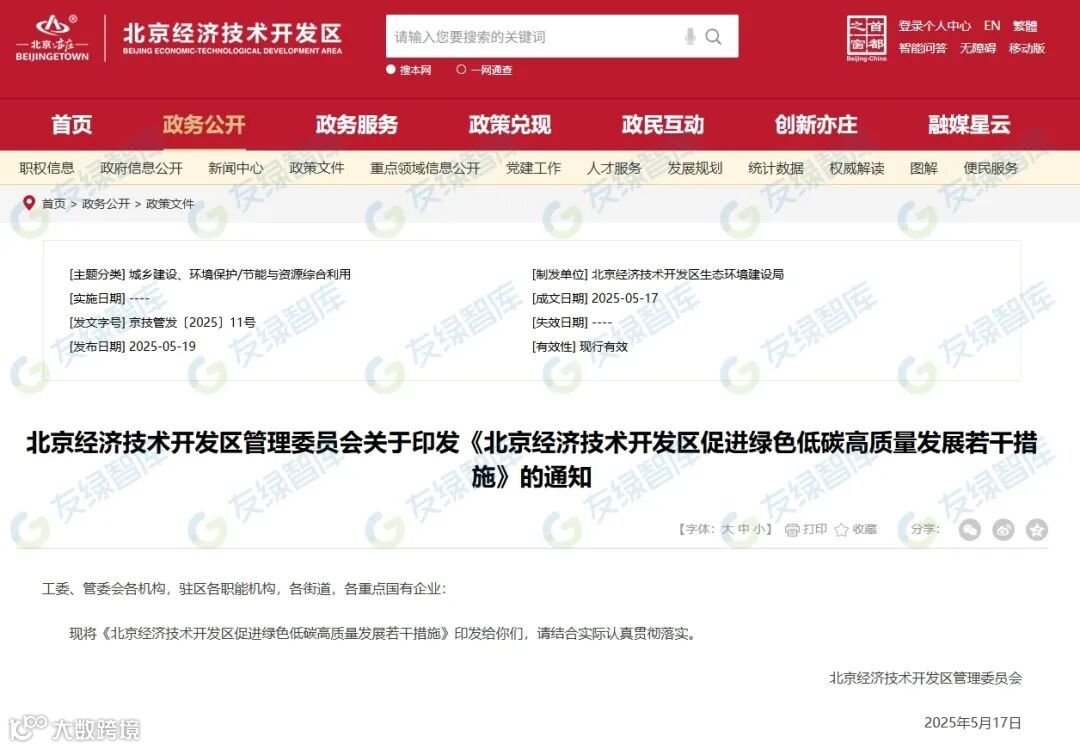 二、北京市经开区出台补贴政策,支持绿色低碳高质量发展