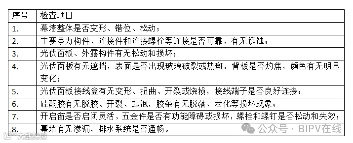 光伏幕墙定期检查项目表