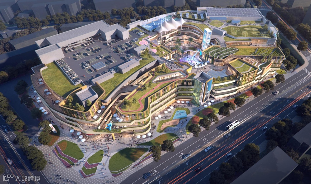 百联西郊购物中心以自然生态构建环绕的绿意飘带,更加开放的入口配合环境宜人的露台,汇聚社交空间的下沉广场,以及建筑屋顶花园结合环绕蜿蜒的步道,打造更为健康的亲人友好型社区环境。改善滨河面,形成与周边环境更加和谐的社区空间。