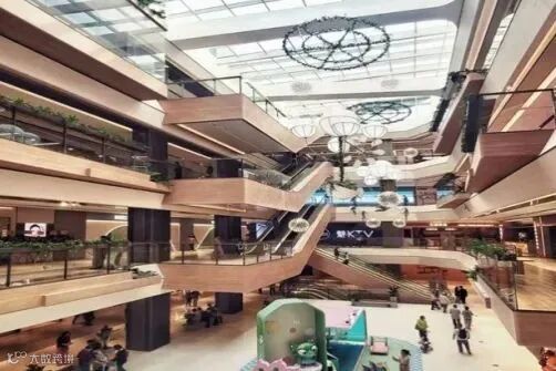 大中庭从地下二层向上形成露天的“骑楼式”大台阶,延展成拥有自然流线层叠的下沉式广场。下沉式广场不仅可供消费者休憩散步,还增加了表演舞台等功能空间;作为整个商场的核心聚集区域,采用之字形楼梯占用最小的展开面,楼梯平台形成不同的社交空间,同时面对着景观电梯的LED屏,形成自然的舞台和观众席,可承接更丰富多元的生活场景。