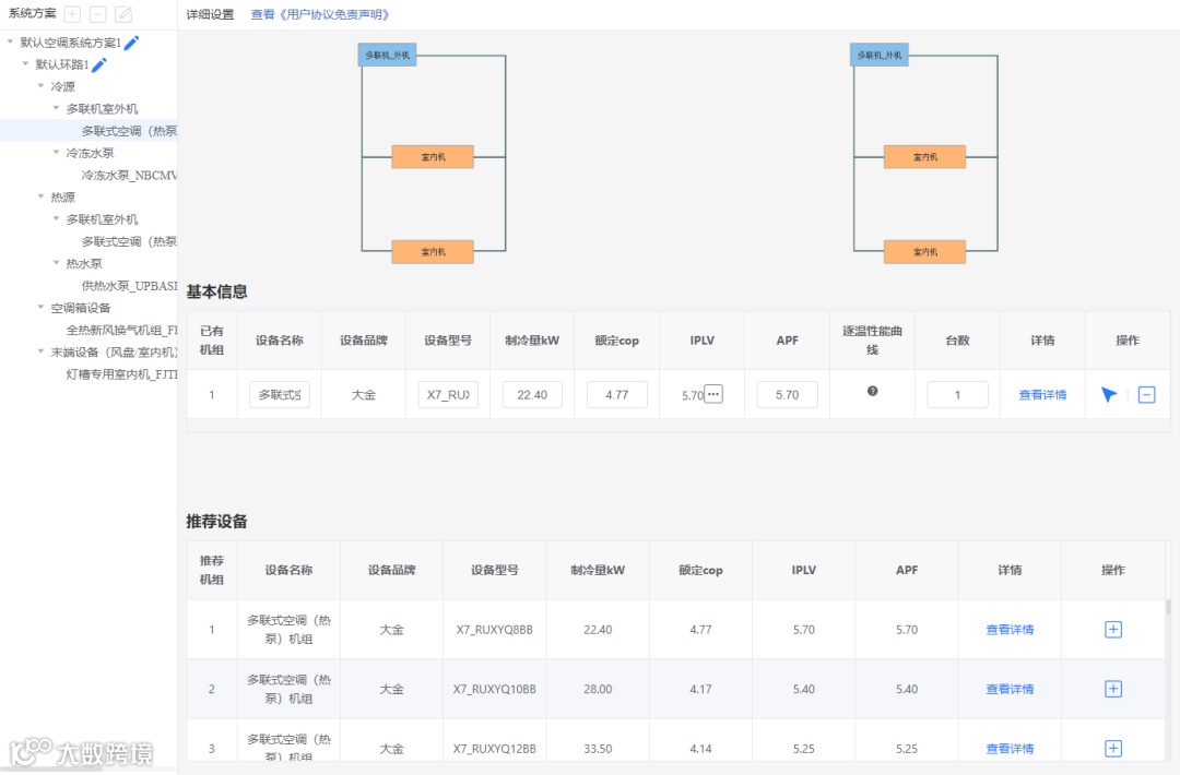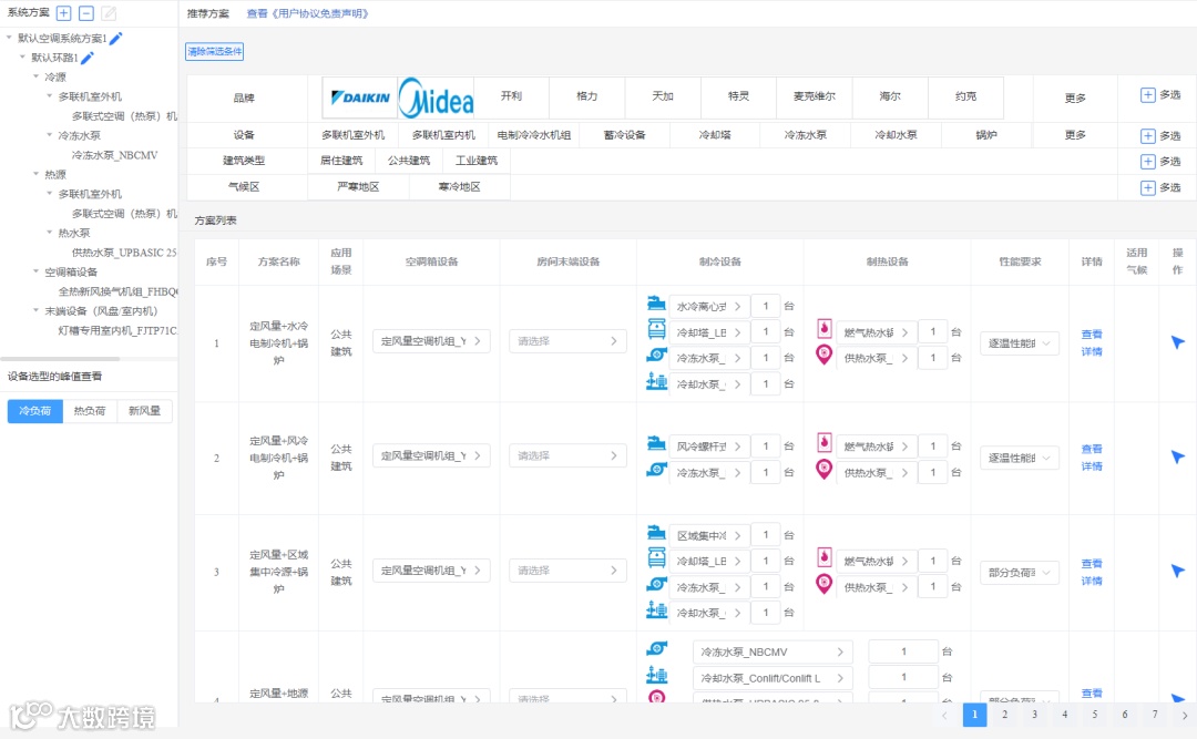 PKPM节能软件已内置多种常用空调系统,并录入设备性能参数及性能曲线供设计选型,如下图所示。