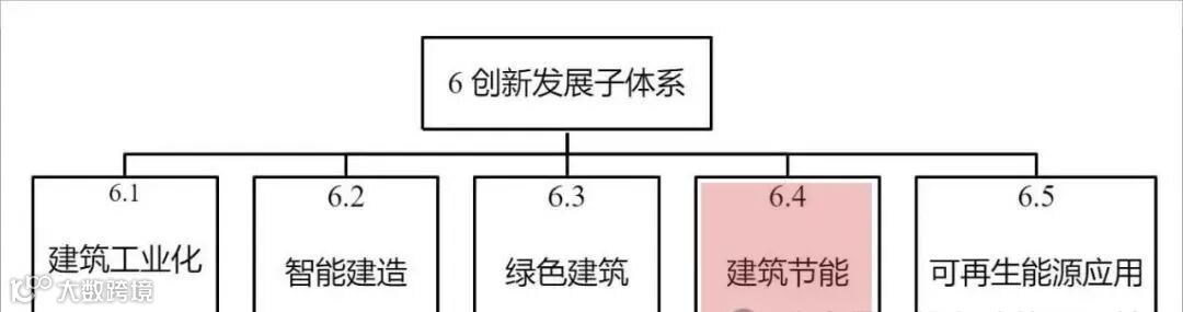 创新发展子体系包括建筑工业化、智能建造、绿色建筑、建筑节能、可再生资源应用5个分子体系,建筑工业分子体系包含装配式结构、施工、检测、评价等标准,智能建造分子体系包含建筑模型设计、施工、交付等标准,绿色建筑分子体系包含绿色建筑设计、验收、评价等标准,建筑节能分子体系包含建筑节能设计、评价、验收及能耗、能效等标准,可再生能源分子体系包含太阳能光伏、光热、空气源热泵技术应用标准,如下图所示: