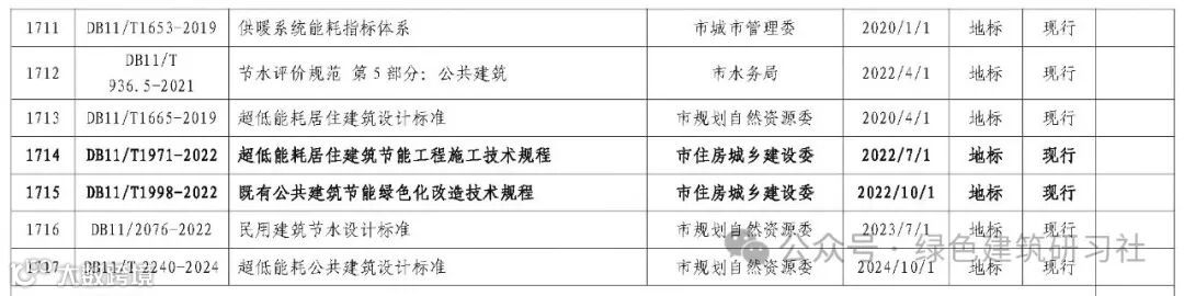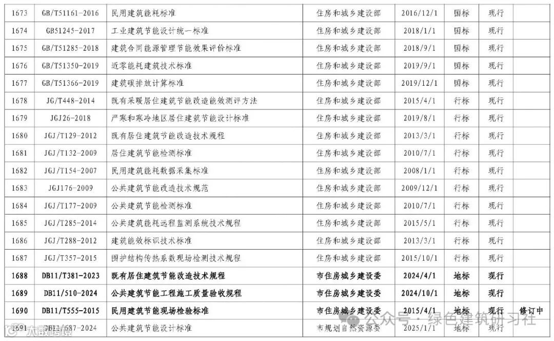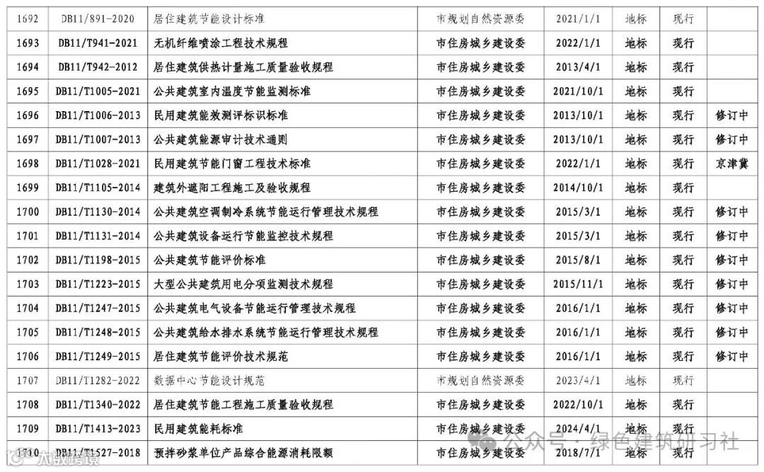 以下为创新发展子体系内的“北京建筑节能标准体系明细表”: