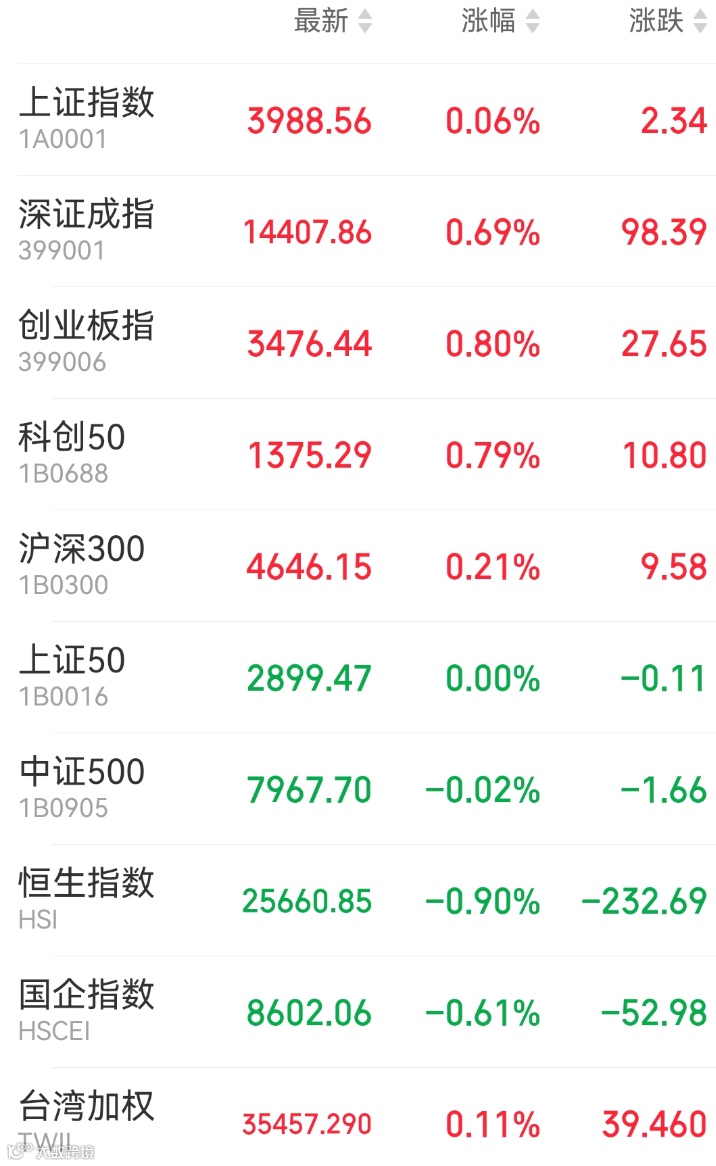1、A股:A股震荡走高,上证指数涨0.06%报3988.56点,深证成指涨0.69%,创业板指涨0.8%,万得全A涨0.25%,市场成交额2.16万亿元。玻璃纤维、锂电爆发,CPO、光通信概念涨幅居前,建材、基本金属、油气、航天军工板块表现亮眼;海运、保险、医疗保健和网游股低迷。