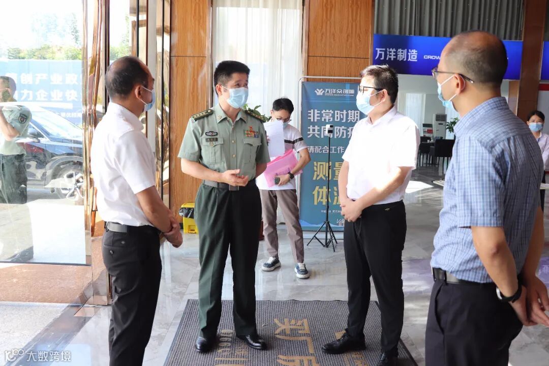 2022年7月13日上午,云浮市委常委、云浮军分区政治委员杨亦文,市退役军人事务局党组成员、副局长彭志忠一行莅临云浮(新区)万洋众创城考察,云浮新区党工委委员莫伍科陪同考察。万洋众创城云浮区域副总经理邓鹏文对领导们的到来表示热烈地欢迎。