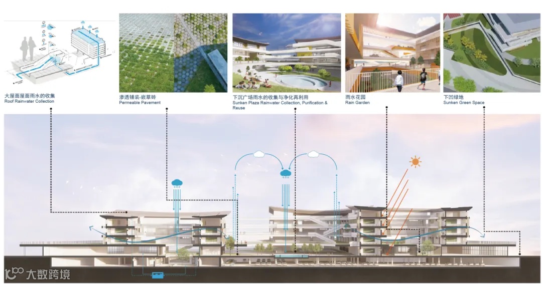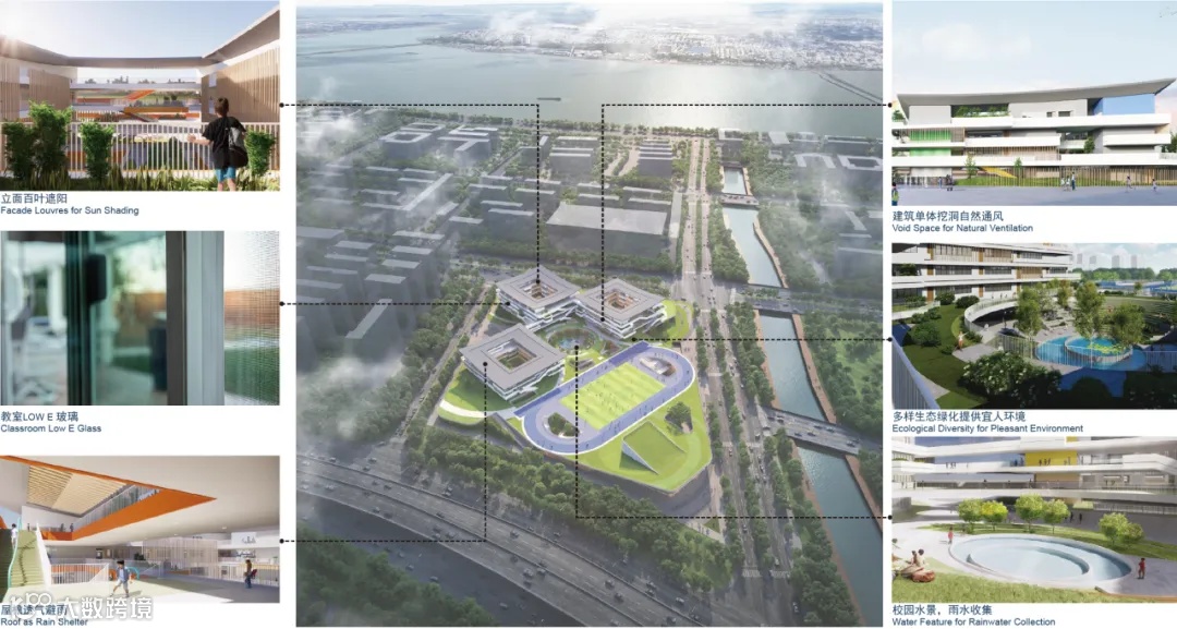 在其中,法国VP设计团队借鉴了杭州传统书院的特色,尝试以一种聚落式的,院景互融的体验空间设计,来延续当地的历史与文化。 用更多样的空间设计丰富学生课堂内外的活动,激发自主学习,社交,探索,休闲等自由行为的发生。 面向未来的校园EMBRACE THE FUTURE 而随着教育和教学需求的与时俱进,原有的教学楼综合体设计不足以满足学校功能的内在需求,因此,建筑师通过一系列思考,创造出拥抱未来的学校空间。 建筑整体遵循三大策略,分别是竖向功能、高效流线,以及童趣绿谷,提供多种多样的教学、生活空间,能够满足学生多样化的学习方法和生活方式。 功能性对于校园的设计至关重要,设计师将操场置于西侧,与城市绿轴紧密连接,综合用房置于南侧,将操场抬高,公共功能围绕操场布置,提供趣味空间。 平台与连廊将串联起来,营造一个多层次的交流平台,各组团内部设计了各有特色的共享空间,用连续的坡道将自然与交互引入其中,通过轻质挑檐延续场所记忆,建筑的开放性和公共性连接了所有功能,为师生提供了明亮、振奋、舒适的环境。 绿色建筑系统GREEN SYSTEM从项目前期策划定位开始,贯穿建筑全生命周期,从整体规划到具体构造设计,法国VP团队始终坚持统筹到具体专项措施的落实落地,梯次践行绿色设计理念。 在未来校园建筑中,设计师着眼于降低建筑从建造—运行—改造—拆解全生命周期,建筑立面采用百叶遮阳,对关键部位采用遮阳及通风设计,减少对空调及机械通风的需求。并置入绿化空间,为在校师生提供自然舒适的环境。 采用大屋面雨水收集系统,配合渗透铺装、雨水花园、下凹绿地,以及下沉广场雨水的收集与净化再利用,建立能量循环利用的概念,对光、风、水、绿、土、材形成充分循环利用,促成总体低碳目标的达成。 更多教育建筑设计作品...列奥纳多·达芬奇大学Pôle Universitaire Léonard De Vinci / 法国库伯瓦/ Conseil Général des Hauts de Seine - 55,000 m² 凯捷安永大学CAP GEMINI UNIVERSITY / 法国古维约/ CAP GEMINI - 23,000 m² 凯捷安永大学靠近尚蒂伊,由一个十八世纪的大公园和一座罗斯柴尔德家族建造的城堡组成。公园已恢复了原有的轮廓,城堡也按照原来的建筑风格进行了修复。砖石修造的房屋、同心的铜盘,新校区设在一个半圆形建筑内,它位于城堡主轴的中心。主要的外形借鉴了桔园以及隐修院的回廊。半圆形的空间,由城堡的外立面合拢,它重新打造了一个宁静致远,启发智力的绝佳之地。 图卢兹米哈耶大学TOULOUSE JEAN JAURÈS UNIVERSITY / 法国图卢兹/ MIRALIS - 60,000㎡ 项目位于图卢兹大学城的中心位置,大学城一期的设计是Candilis 先生在1970年完成的。设计的理念源于数据网络,而数字化正在引领着当今的教育、教学领域以及我们的日常生活。 空中客车大学校园UNIVERSITY OF AIRBUS / 法国图卢兹/ 空中客车集团 - 12,800㎡ 瓦尔德比埃弗尔大学城VAL DE BIÈVRE CAMPUS / 法国让蒂利/ MACSF/ BOUYGUES IMMOBILIER - 51,000㎡ from: 法国VP建筑设计,在此仅作为交流,如涉及作品内容、版权和其它问题,请及时与我们联系,我们将在第一时间删除,感恩您的理解包容。