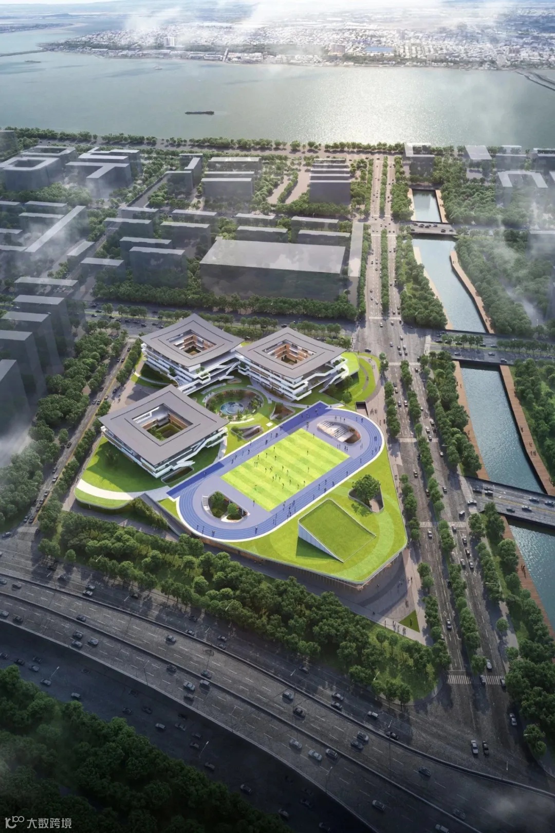 “江南忆,最忆是杭州”"Memories of Jiangnan, most of all Hangzhou." 杭州,江南旧都,其魅力与气魄,来自于得天独厚的历史与风土人文。而在蓬勃发展的钱江新城,时代的浪潮与城市的记忆正在孕育新生。 如何延续场地氤氲的城市历史?新时代即将激发起独特的校园气质和教育理念,在这个历史人文之城,在这个生态优势新城,法国VP希望创造一个植根于杭州历史、文化、风土脉络上的,记忆与想象共存的未来校园。 项目背景PROJECT BACKGROUND 方案场地位于钱江新城二期的核心地带,规划用地面积41362平方米。此处西临西湖,南望钱塘江,场地内地势平缓,周边景观资源丰富。