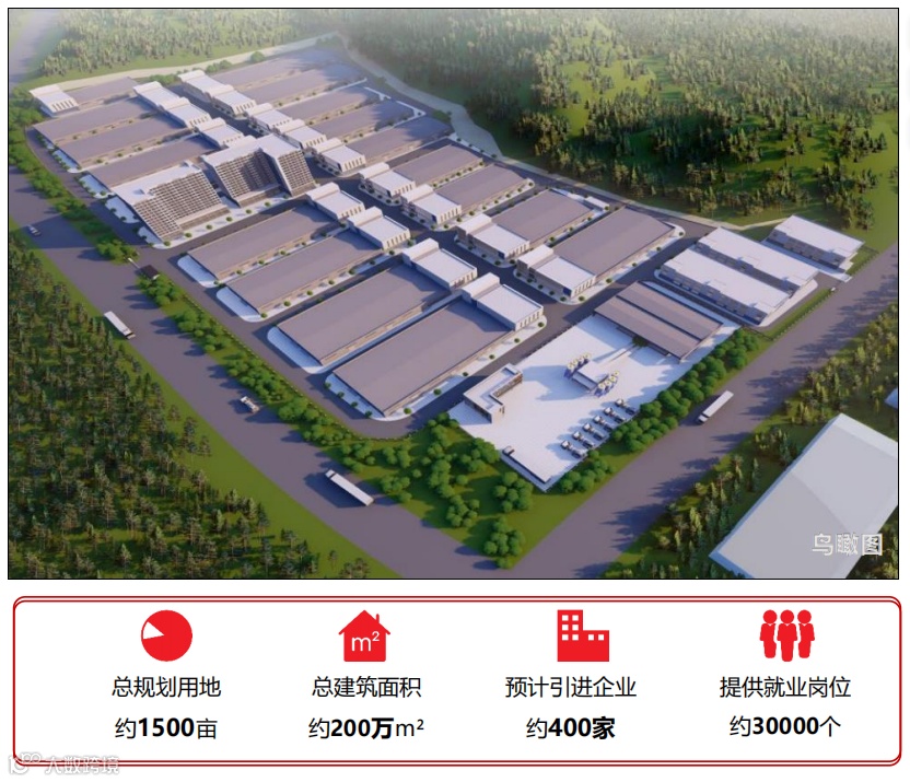 【项目规模】总投资约70亿元,计划用地1500亩,总建筑面积约200万㎡,预计可容纳400家企业,年产值约80亿,年创税收5亿元,提供就业岗位近3万个。其中一期规划385亩,总建筑面积约30万㎡。