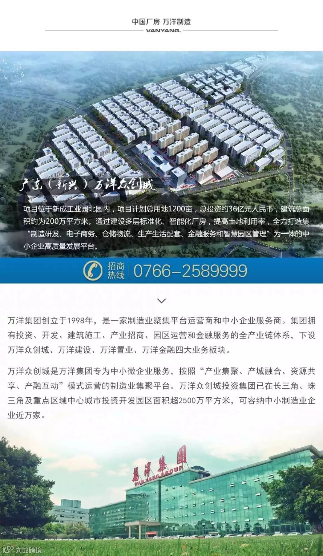 广东(新兴)万洋众创城项目计划用地1200亩,总建筑面积约200万平方米,其中一期用地197亩,工程于2018年9月开工建设,计划投产时间为2019年12月。