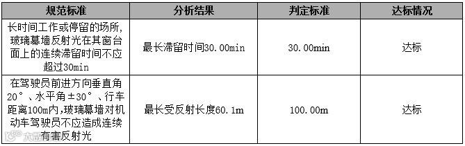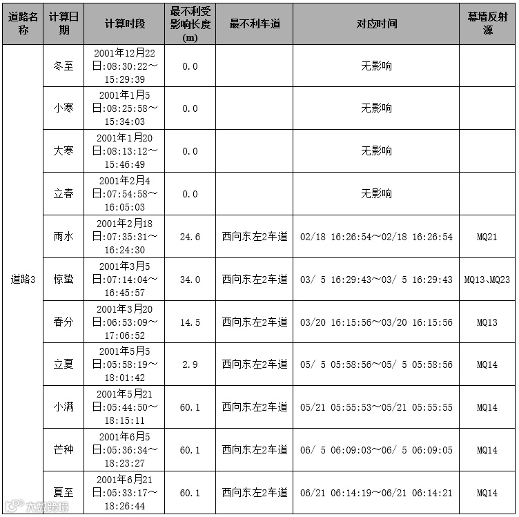 3、除分析玻璃幕墙反射光照射对周边居住建筑的居住空间窗台影响外,还需分析玻璃幕墙对机动车驾驶员造成连续有害反射光影响。