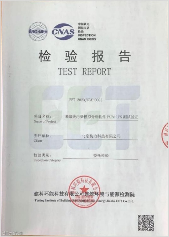 近日,由北京构力科技有限公司自主研发的幕墙光环境设计仿真软件PKPM-LPS,顺利通过了建筑环境与能源检测院光环境与照明研究中心的严格测试验证。该中心作为国家级光环境鉴定机构,具备ilac-MRA及CNAS资质,权威性十足!