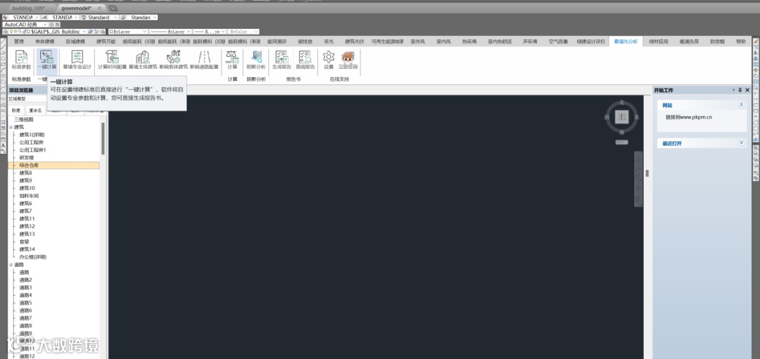 一模多用,无需重复建模,直接使用PKPM绿建模型,在进行幕墙光环境分析时,可直接使用PKPM绿建模型,如室外风、室外声等模型,无需重复建模(即使没有现成的模型,也可在几分钟内快速建成!)