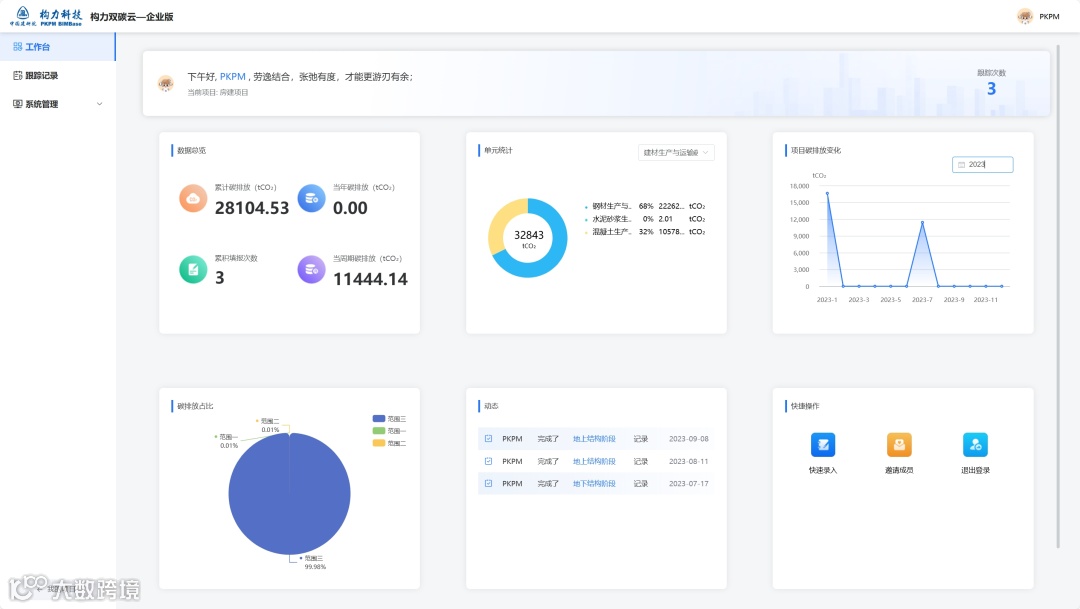 PKPM-CC双碳云服务平台(企业版)面向建筑企业与建筑项目进行碳排放计算与监管,平台内置建筑企业与项目碳排放监管算法模型,支持手动、智能硬件、数据接口等多种排放源数据的采集、录入与接入,可直观的查看计算分析结果,建筑企业与项目排放情况清晰可见,平台支持多级组织管理体系、支持团队协作、支持数据汇总,助力建筑项目与企业对碳排放实现全方位监管。
