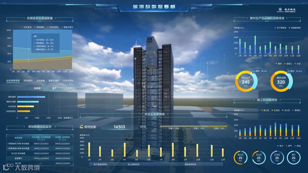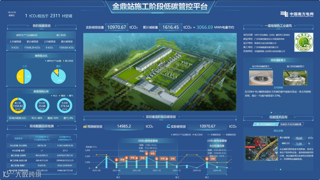 基于变电站项目,建立碳排放计算体系,开展碳量全面摸底,研究变电站施工阶段降碳措施,建立碳排放碳平台系统,基于低碳技术实施智能化把控,实现智能高效的碳排放监管。