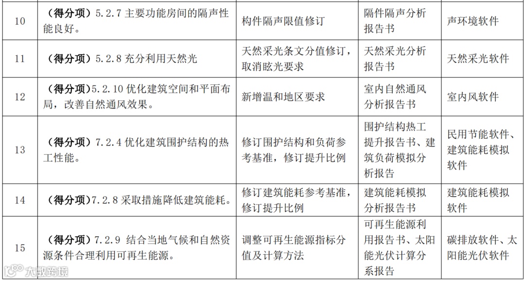 (1)绿建条文与强制性通用规范进行协调,修改绿建条文内容相比强制性规范进一步提高要求;