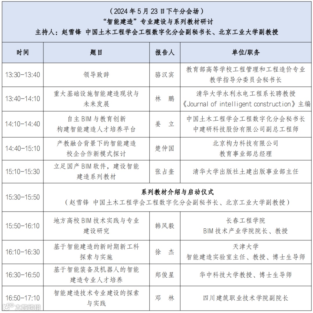 本次大会特别推出“智能建造专业建设与系列教材研讨”分论坛,“四号通知”旨在招募有志于参与智能建造领域教材编写的企业,共同推动产学研深度融合,促进智能建造专业人才的培养与发展。