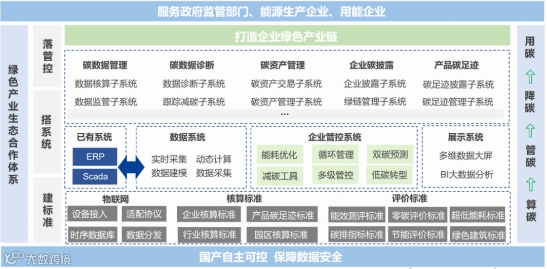 面向企业管控需求:为企业提供算法定制、动态核算、多项目协同监管、绿色供应链建设、大屏建设、属地化部署等企业服务。