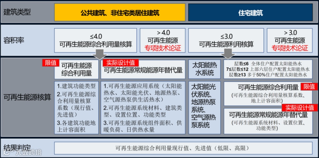 基于上海、浙江等地的标准对可再生能源利用进行设计,根据可再生能源应用的资源条件,合理进行可再生能源建筑应用,并通过对标判定,进行可再生能源的定量化核算,完成从粗线条的定性要求到精细化的定量指标的跨越式发展。