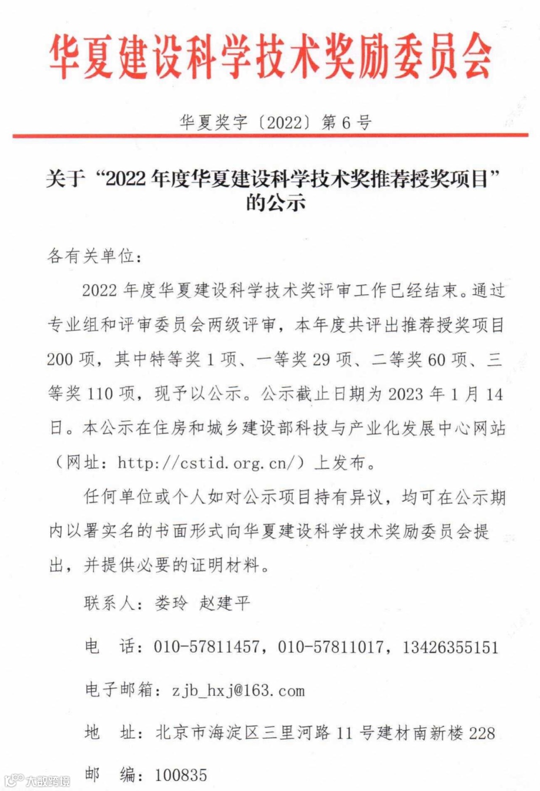 导读:关于 “2022年度华夏建设科学技术奖推荐授奖项目”的公示
