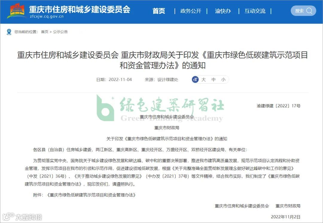 关于印发《重庆市绿色低碳建筑示范项目和资金管理办法》的通知