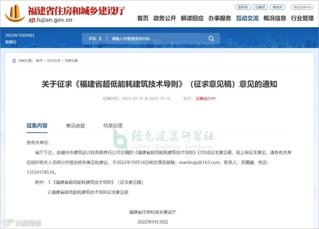 省厅下达,由福州市建筑设计院有限责任公司主编的《福建省超低能耗建筑技术导则》已完成征求意见稿,现上网征求意见,请各有关单位组织有关人员研讨并提出修改意见和建议,于2022年10月16日前反馈至邮箱: martinzjy@163.com ,联系人:郑嘉耀,电话:13559178518。