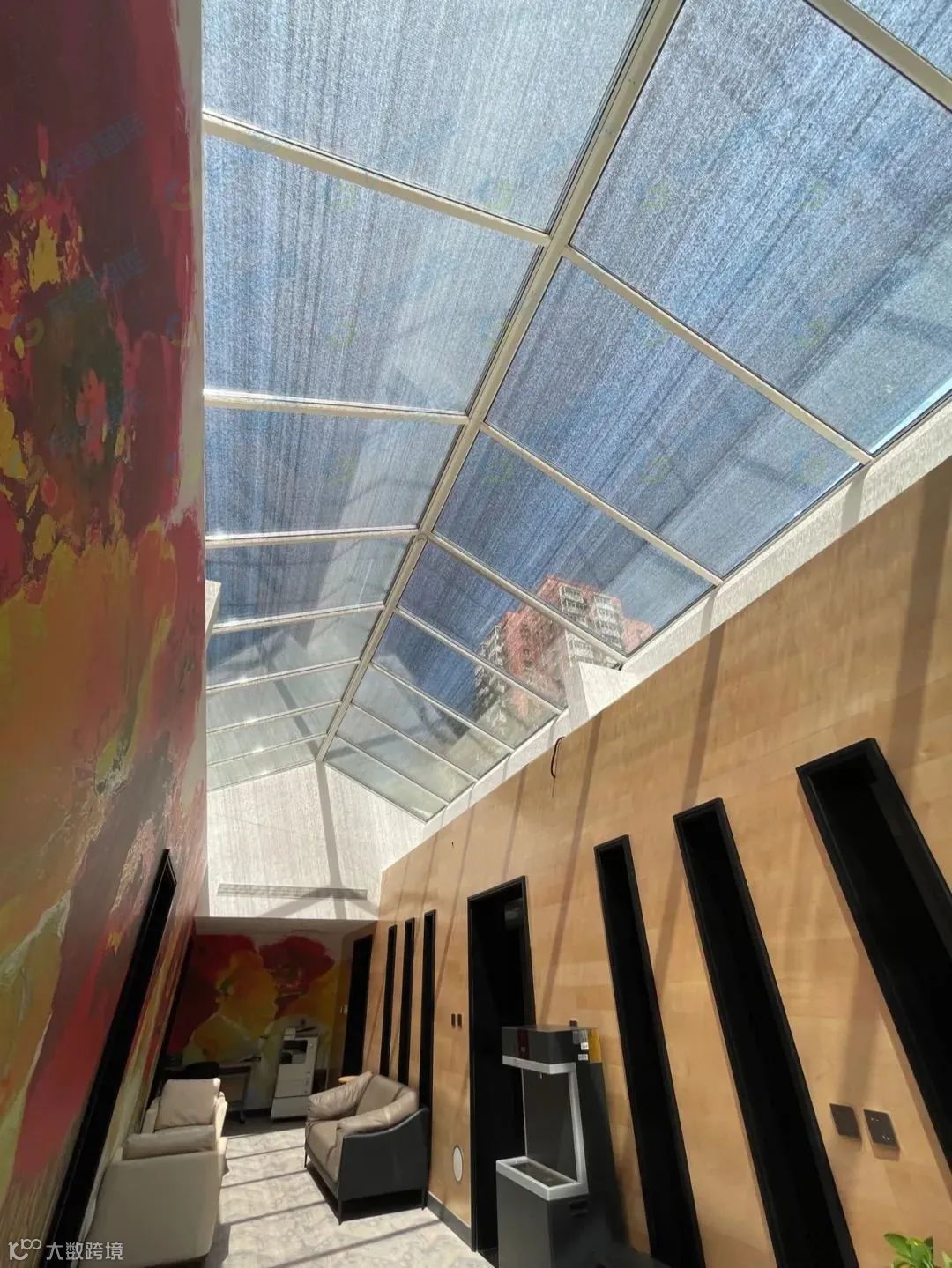 室内还采用了导光筒(光导照明系统),屋顶上一个个圆形的“大灯”,没有电源,而是通过折射、反射阳光,将室外光线引入室内,不仅节能,而且比电灯更自然、更柔和。导光筒利用高反射的光导管,将阳光从室外引进到室内,可以穿越吊顶,穿越覆土层,还可以拐弯延长绕开障碍,将阳光送到任何地方。是一种绿色、健康、环保、无能耗的照明产品。