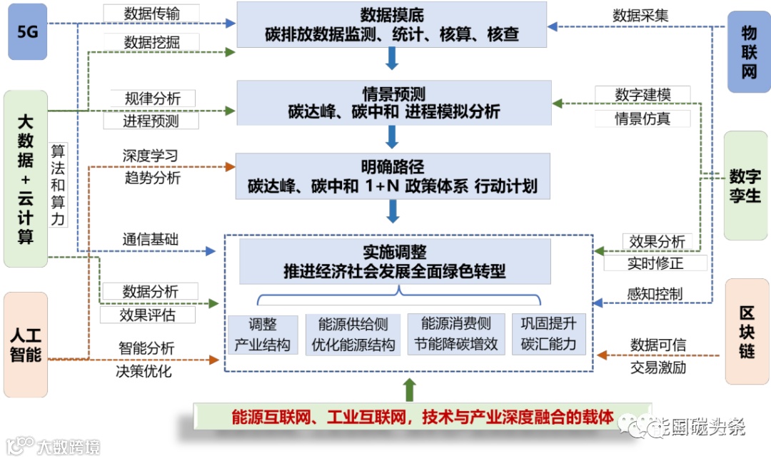 在此过程中,5G、大数据与云计算、人工智能、物联网、数字孪生、区块链等数字技术在支撑我国碳达峰碳中和目标实现过程中将发挥重要的力量。