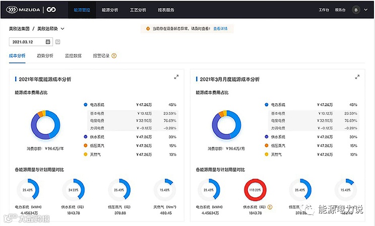 浙江美欣达纺织印染科技有限公司建立了智慧能源管理系统,在有效实现能耗管控的基础上力求降本增效。