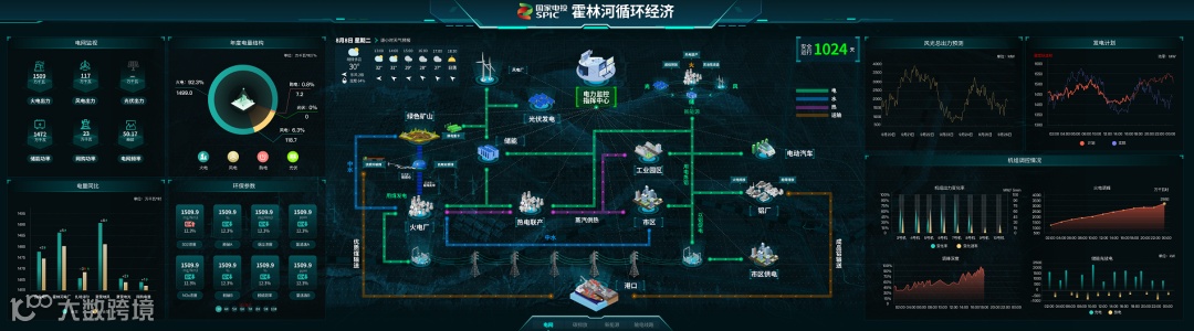 1)全景驾驶舱:局域网、碳排放、新能源、输电网