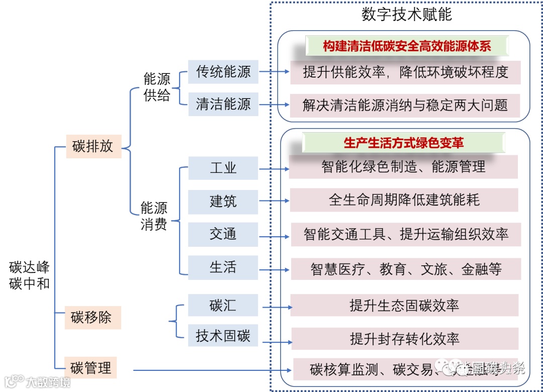 数字技术助力碳达峰碳中和的思路框架(来源:信通院《数字碳中和白皮书》)