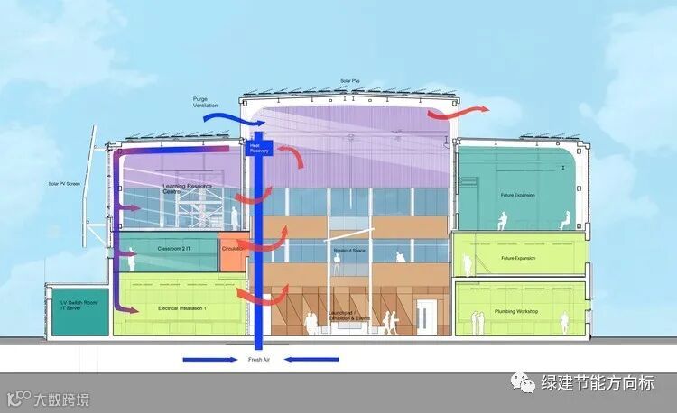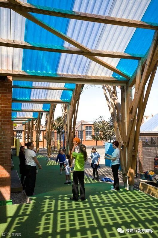另一个标志性项目是Cottrell & Vermeulen Architecture Ltd 对 Westborough 小学的翻新工程,其设计方法基于减少所有能源需求、有效利用资源和使用可再生能源的理念。建筑师们指出,“最近的研究表明,新建筑的二氧化碳排放量是连贯和充分改革的四倍以上。得出的结论是,符合现行标准的新建建筑可能需要长达 50 年才能实现改革。在通过降低运营排放来偿还碳债务方面,他们将不得不进行改革。”