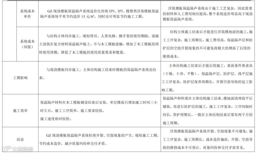 《GZ 现浇楼板保温隔声系统与浮筑楼板保温隔声系统综合对比》