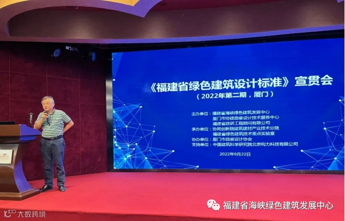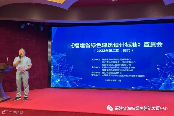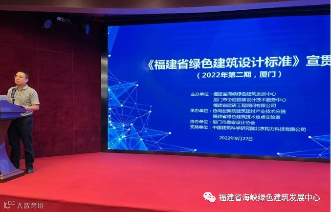 由福建省建筑科学研究院有限责任公司会同有关单位共同编制的《福建省绿色建筑设计标准》DBJ/T 13-197-2022(以下简称“标准”)自2022年9月1日起实施。为尽快促进我省专业技术人员对标准相关技术条款的理解,掌握标准的主要内容和规定,不断提高专业技术水平,保证标准实施效果和执行力度,由福建省海峡绿色建筑发展中心和厦门市协建勘察设计技术服务中心及福建省建研顾问有限公司共同主办,协同创新院建筑建材产业技术分院和福建省绿色建筑技术重点实验室承办、厦门市勘察设计协会协办的2022年第二期《福建省绿色建筑设计标准》宣贯会于2022年9月22日在厦门顺利召开。来自省内建筑设计单位、施工图审查机构及建设单位(甲方)等140余名相关技术专业人员参加了本期培训。本次会议得到了中国建科院北京构力科技有限公司的大力支持。