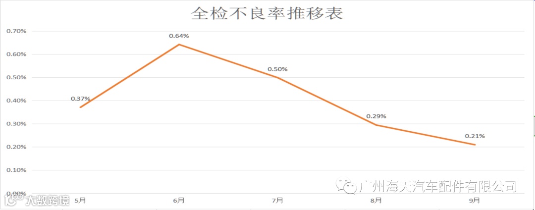 总结:从整体全检产品来看,至7月份后有逐步下降的趋势。A39中央格栅不良改善明显,特别在7、8月份0不良。