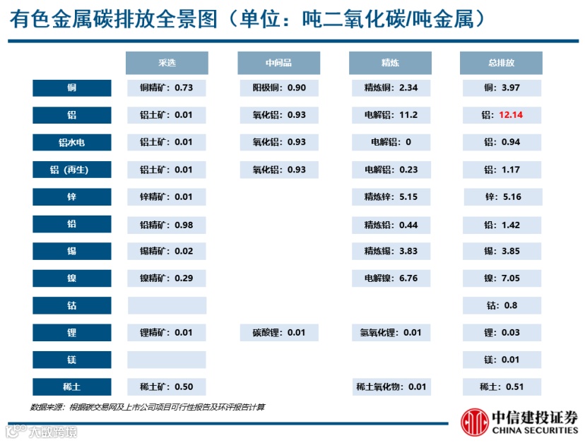 电解铝具有高耗能属性,生产一吨电解铝耗电13500度,中国发电主要为火力发电,对应单吨电解铝产生碳排放量为11.2吨;水电铝项目采用水利发电的清洁能源,可实现“零碳排放”;再生铝由于利用废铝进行冶炼,单吨电解铝碳排放为0.23吨;有色金属工业协会将推动实现以电解铝行业为重点的“碳中和”,严控电解铝产能总量,水电铝和再生铝相关标的有望受益。