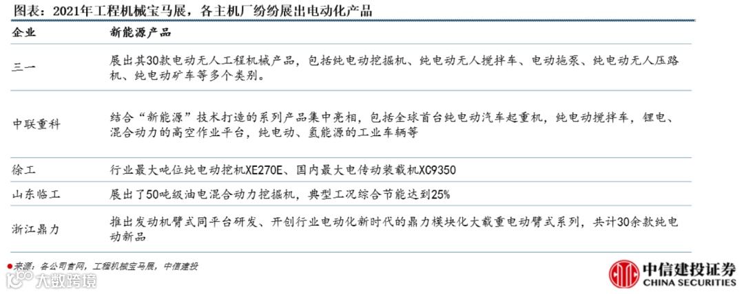 工程机械龙头企业在电动化领域研发实力更强,布局更早,将引领行业进步与变化,重点推荐三一重工、中联重科、徐工机械。