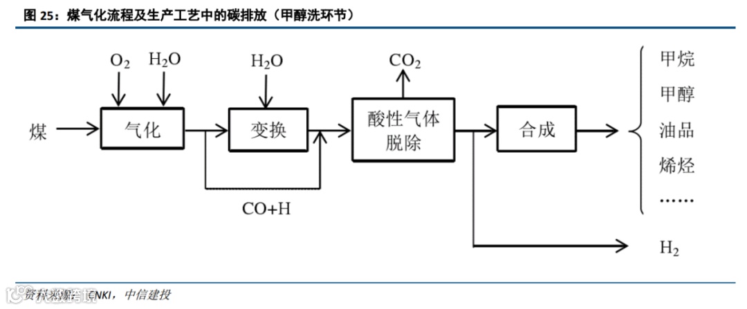 3、优质企业有更好的气化工艺,碳转换率更高、煤炭单耗更低,无形之中都降低碳排放:先进的气流床煤气化工艺,不但对原料煤品质要求更低,碳转换效率也更高。以华鲁恒升为参考,其制造单位合成气消耗煤565kg,远低于固定床工艺690-690kg的消耗。另以宝丰能源为参考,据公开披露资料,公司CTO路线煤醇比1.5、甲醇单耗2.89,这些都提供了潜在的碳排放降低。另外,更加改良的甲醇洗环节工艺也将有效降低煤化工生产工艺中产生的碳排放。