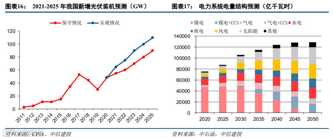 (1)能源结构方面,为实现“碳中和”,光伏、风能等清洁能源在能源中的比重将大幅提升,预计整体比重将从目前的10%以内提升至70%以上,平均每年提升1.5至1.6个百分点的比重。