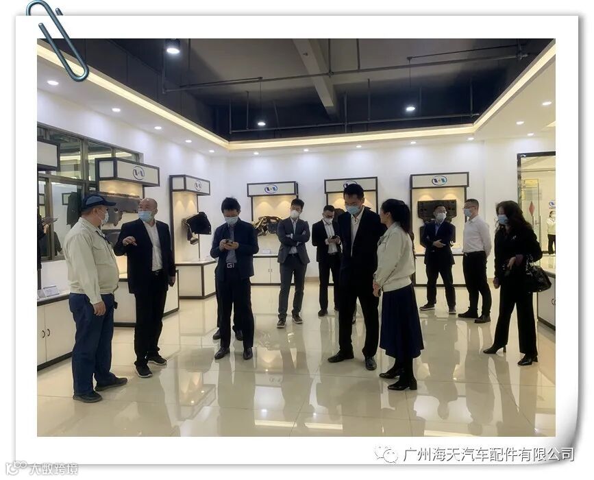 2023年2月24日上午,海天集团行政副总张秋英女士携同赤坭工厂长谭春君先生热情接待: 广州金融控股集团有限公司副董事长&总经理梁宇先生、 广州金融控股集团有限公司党委委员&副总经理林伟清先生、花都区政协副主席&区科工商信局局长陈为文先生、广州金融控股集团有限公司党委委员&副总经理王达先生等领导一行。(此名单按图三站位从左至右介绍)