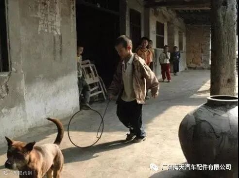 课间或者放学后,我们经常三三两两聚在一起,然后各人拿着自带的铁环摆开架势,自定规则比赛滚铁环。