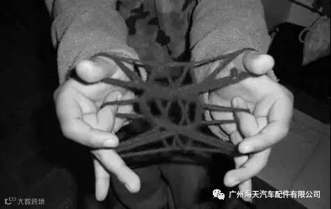 翻花绳的起手式一般是“面条形”,常见的花样大概只有5~6种,比如“牛眼”或“花手绢”。先打个小巧的结,环绕于双手,撑开在空中,准备动作就做好了。