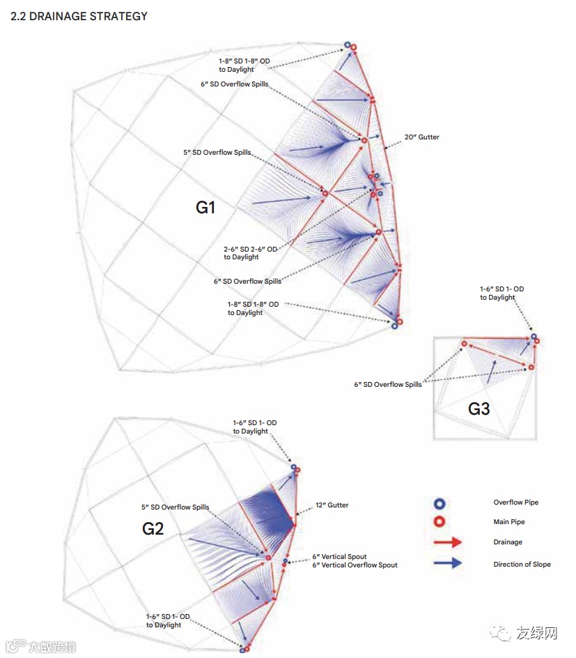 园区建筑物顶棚排水和废水收集管网示意图