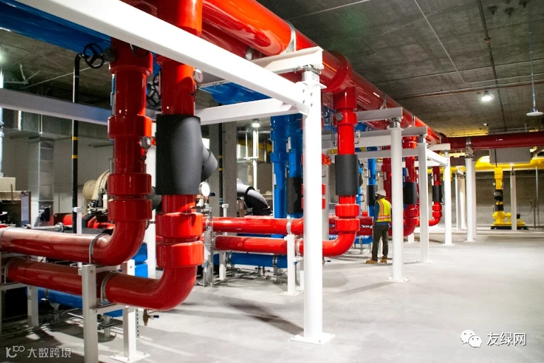 同时,在园区停车楼所在的建筑物地下,谷歌也修建了一座中央处理厂,处理包括雨水/废水在内的各种资源,并将其输送回建筑物,进行重新利用。