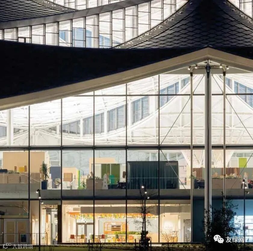 对人的关注还体现在对员工可以看到和感觉到的元素的关注——比如材料、日光、空气质量、热舒适性和声学效果。以下是整个园区的具体表现:
