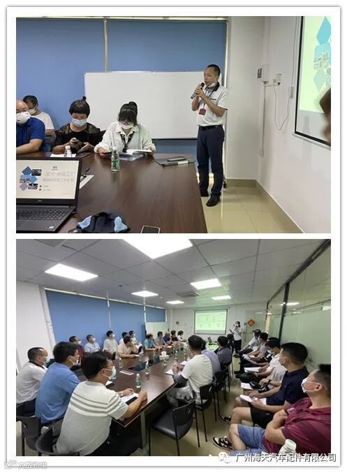 图一: 谢队在海天会议室介绍安全生产管理和6S推行的要点。