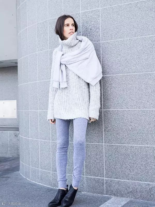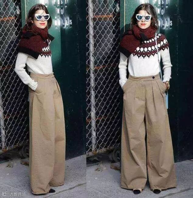 However,如果你身穿外套,不适宜搭配这样的系法。想要穿出彩,最好上身搭配毛衣,有质感又显得工整,慵懒又不失时髦感。