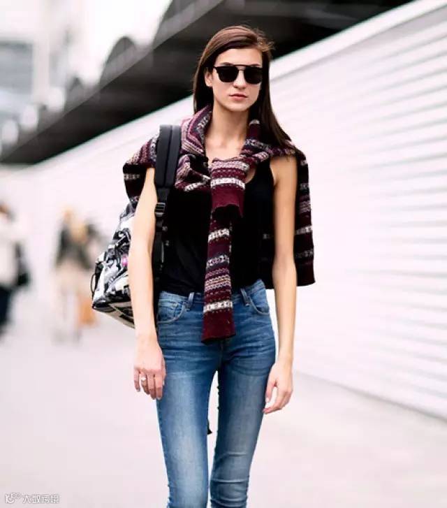 将毛衣的两头宽松的搭在肩上,通过制作空间感营造单薄的瘦削感才是十字法减重的重要心机。
